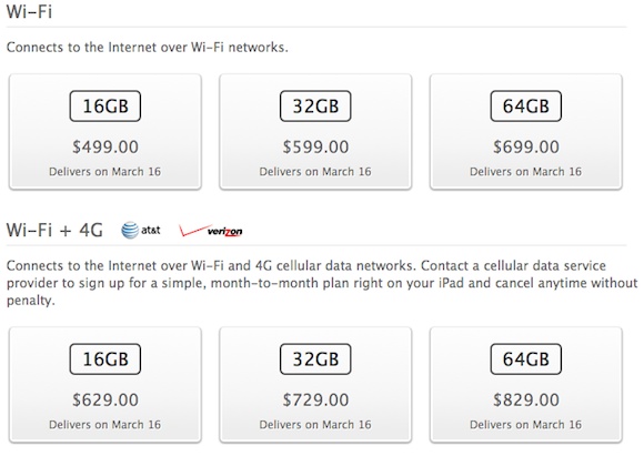 Ταυτόχρονα με την κυκλοφορία του νέου iPad η Apple αποφάσισε να διατηρήσει στην αγορά το iPad 2 16GB Wi-Fi στα 399 δολάρια και το iPad 2 Wi-Fi + 3G στα 529 δολάρια.